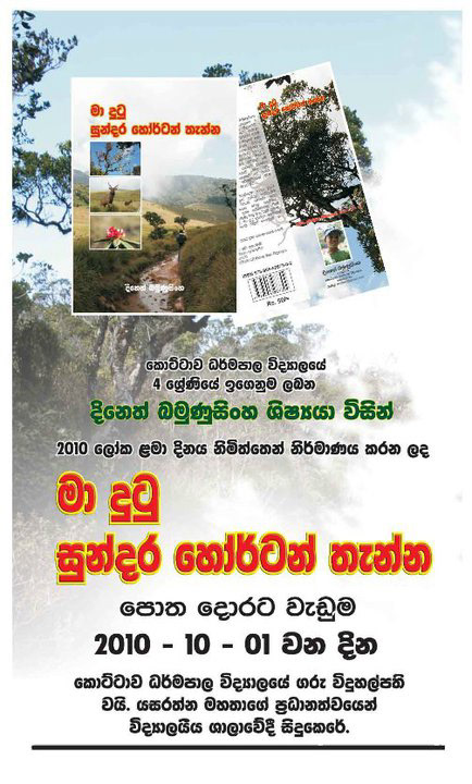 In Grade 4 (2010, Age 9), following a family visit to Horton Plains, I wrote, photographed, and designed a small illustrated booklet titled: