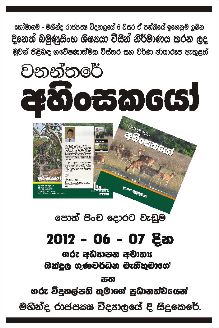 • 2012 – “Wananthare Ahinsakayo” (Innocent Lives of the Wild)